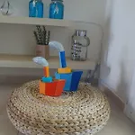 Apartamentul este dotat cu facilități de self-catering, inclusiv o bucătărie complet echipată și o zonă de luat masa de care oaspeții se pot bucura. De asemenea, autoservirea la fața locului include frigider, un cuptor și sticlărie, precum și aparat de cafea/ceai. Oaspeții se pot bucura de gustări și mese grece la Mple Seaside Gastrobar, situat la doar 12 minute de mers pe jos. Aeroportul Salonic este situat la 90 de km, iar stația de autobuz KTEL Chalkidiki se află la 350 de metri de această cazare.
